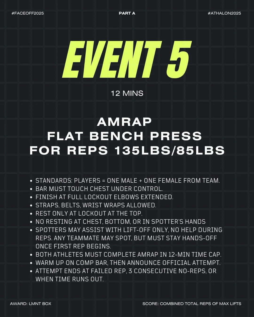 AMRAP FLAT BENCH PRESS FOR REPS 135M/85F