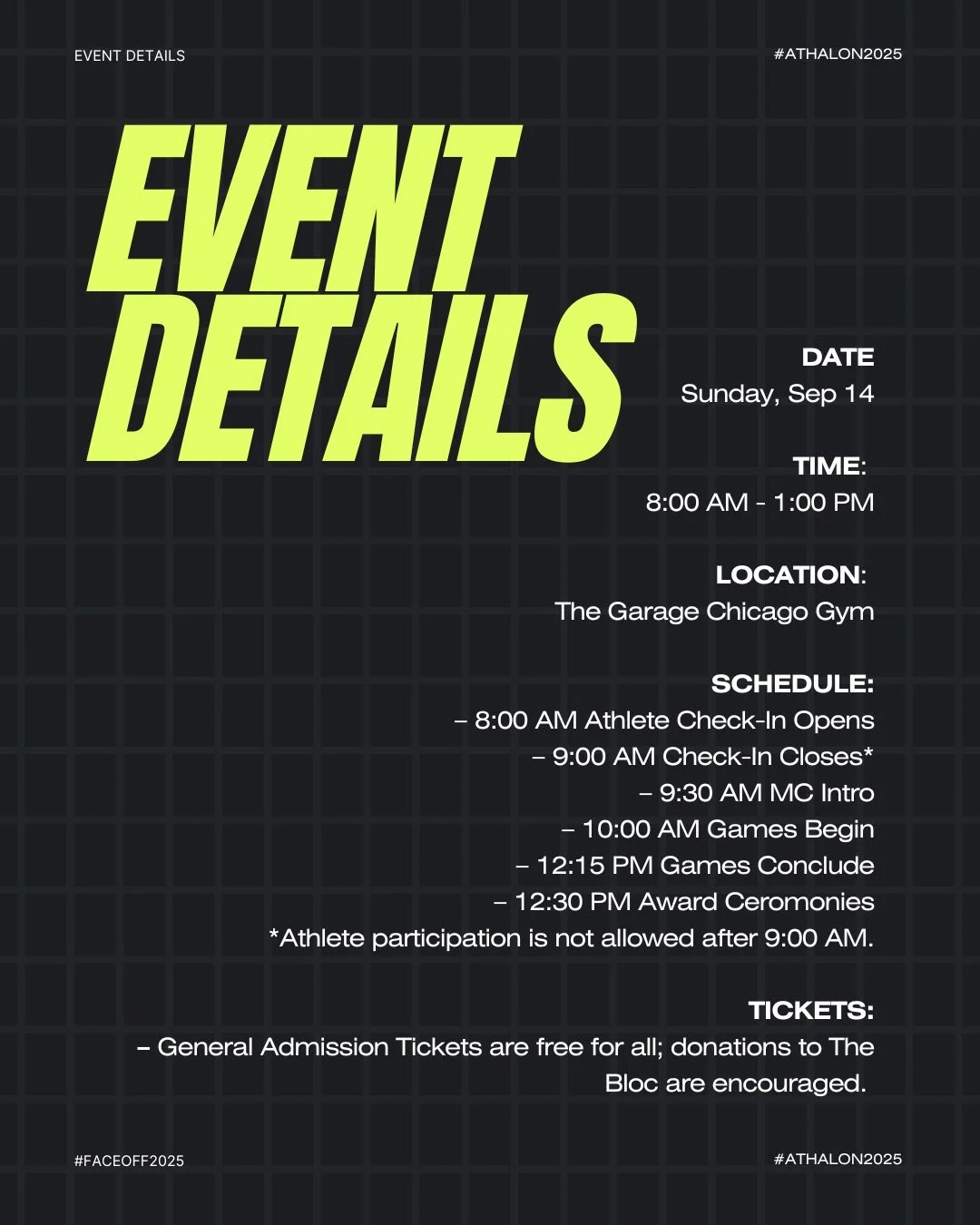 *Please arrive on time for athlete check-in.